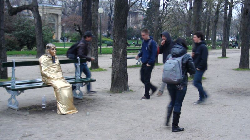 Ở Việt Nam tôi vốn không thích cho tiền những người ăn xin hay hát rong, nhưng lần này, có đến hai lần tôi cho tiền những người nghệ sĩ hát rong trong lòng đất Paris. Lần đầu, ngay trên chuyến tàu đầu tiên tại Paris, một người đàn ông luống tuổi tay cầm cây đàn accordeon chân nhún nhảy người nghiêng nghiêng miệng tươi cười tay kéo tuôn trào những giai điệu hết sức quen thuộc của những bài hát tôi yêu thích Kachiusa, Tình ca du mục (Those were the days),...